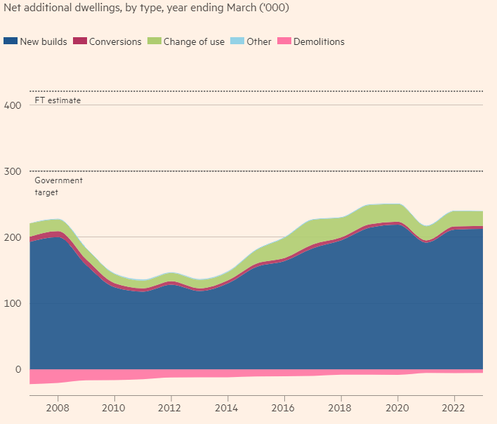 The government set an ambitious target of new dwellings a year at 240,000 in 2004 and a revised amount in 2018 of 300,000, which has in the last 2 decades not been met. The financial times views, the government target as potentially undercounted, as determining housing needs depends on the pace at which people move in their own homes. Conversions so far have amounted to a sliver of total dwelling creation, and this project may provide a quick and partial solution to the gap in demand and supply of affordable housing.
